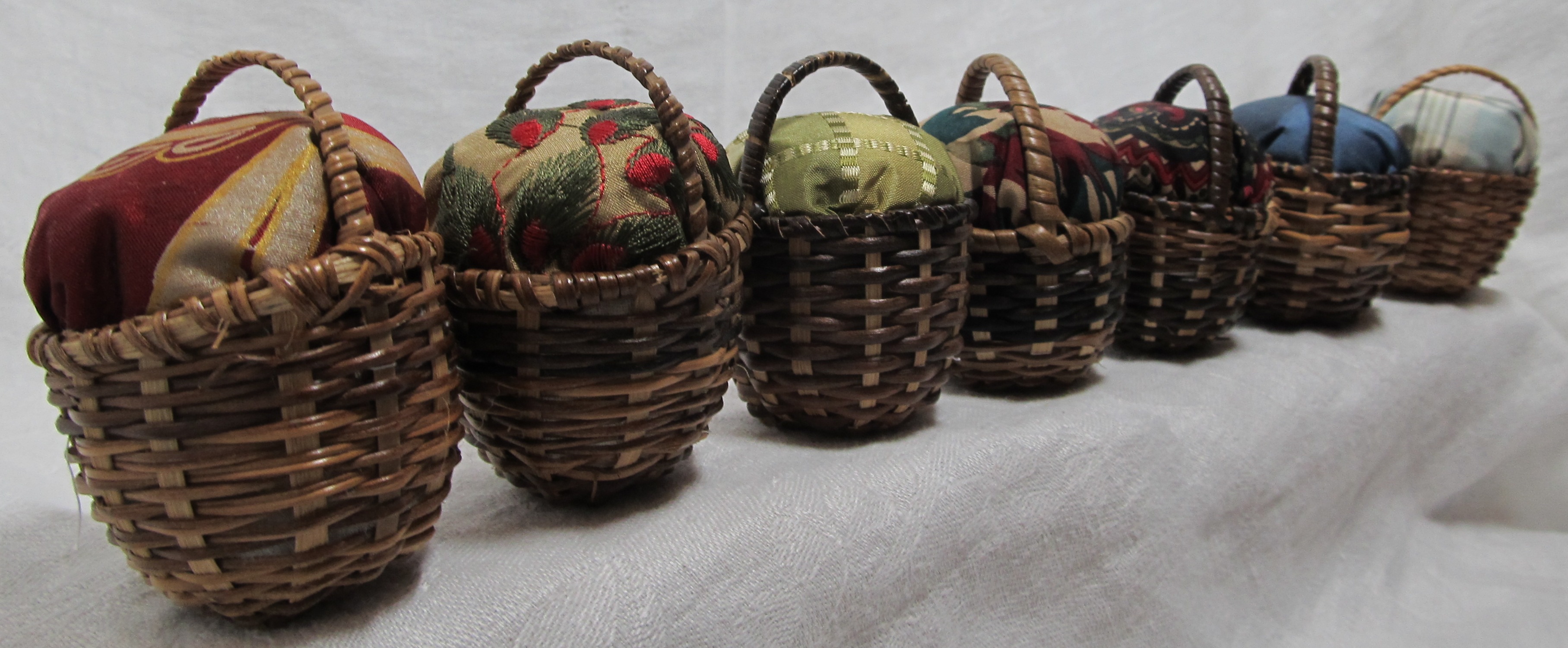 If a single or only a couple straws have been broken, it may be possible to replace or support those areas with additional plait if a matching plait can be found. To support, clean the break with fine scissors or nail clippers so the cut is along the diagonal of the plait. Unpick the stitches connecting that row of plait to those adjacent. Cut a piece of straw 2 or 3 inches long with diagonal cuts. Slide the piece into the fracture. Line it up carefully. Sew the piece into place catching the layers and the broken strips.