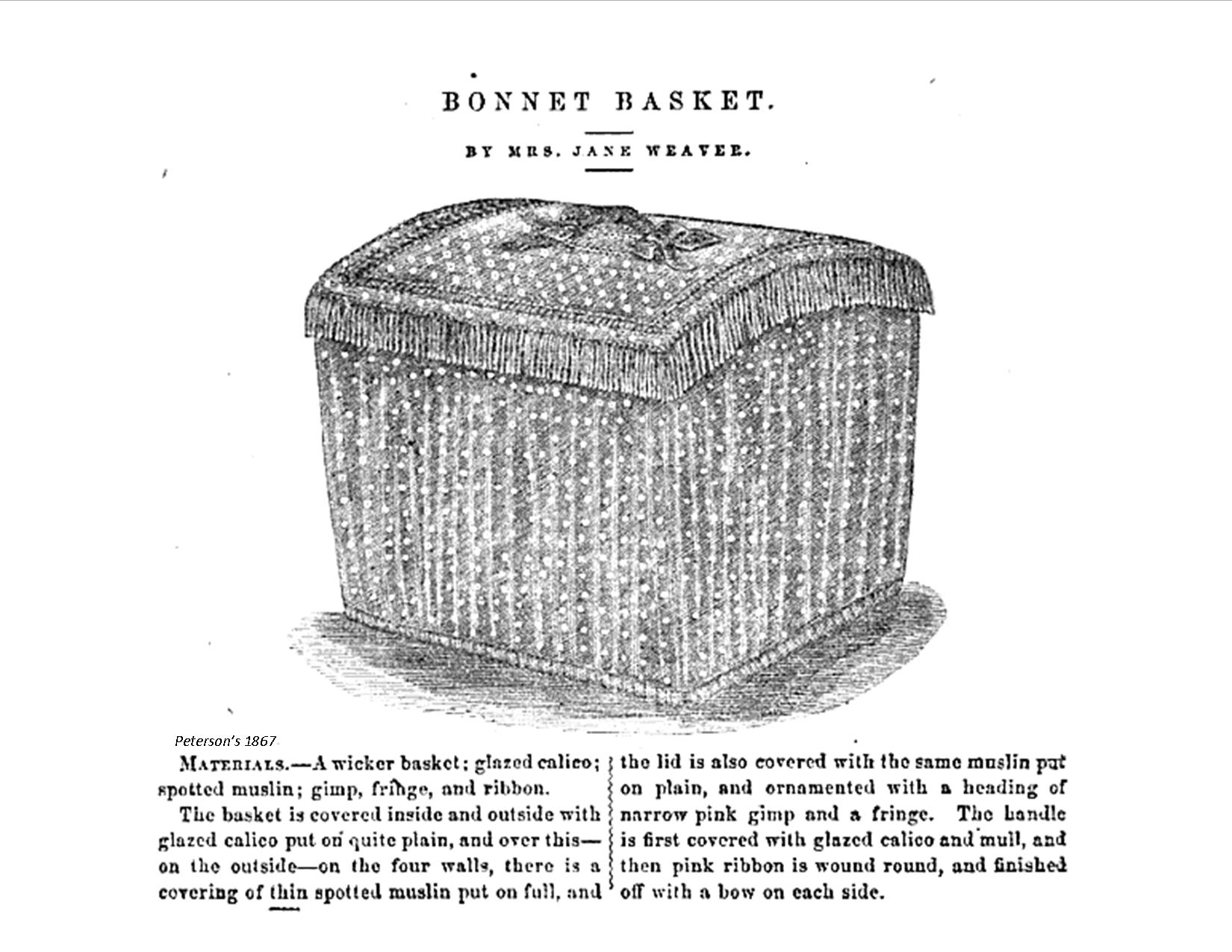 So far, this is the earliest mention of using a bonnet basket, 1867: