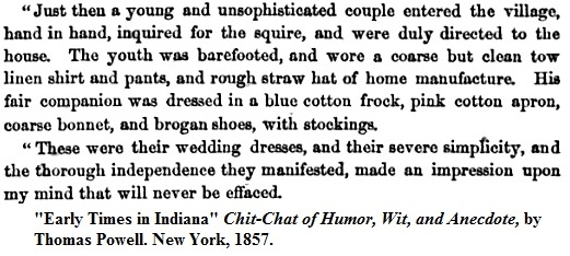 Here a young couple, described as “unsophisticated” are attired in other clothes associated with being poor and a “rough straw bonnet of home manufacture.”Coarse straw bonnets for the poor 1857