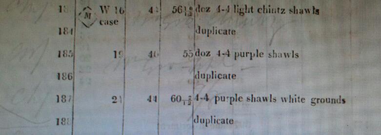trimming of wool, silk, cotton, worsted or a combination of fiber], passed through one side, large
