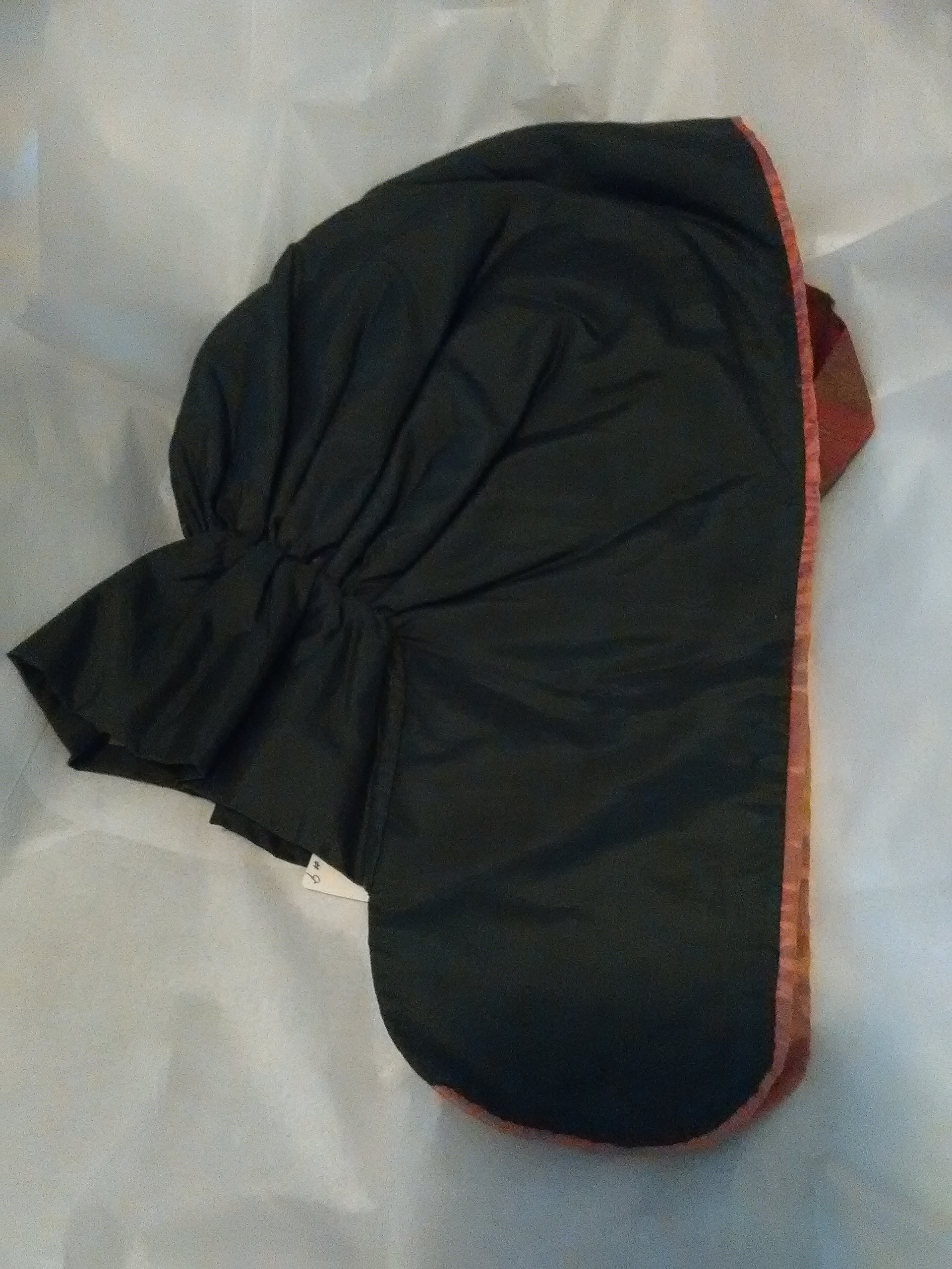I do think I was able to get in more stitches than breathes. People were very interested in how the pumpkin name reflected the shape and how it hugged the head. I found myself talking about the naming, where it can be found, how the hood compared in function and construction to the other hoods I brought.