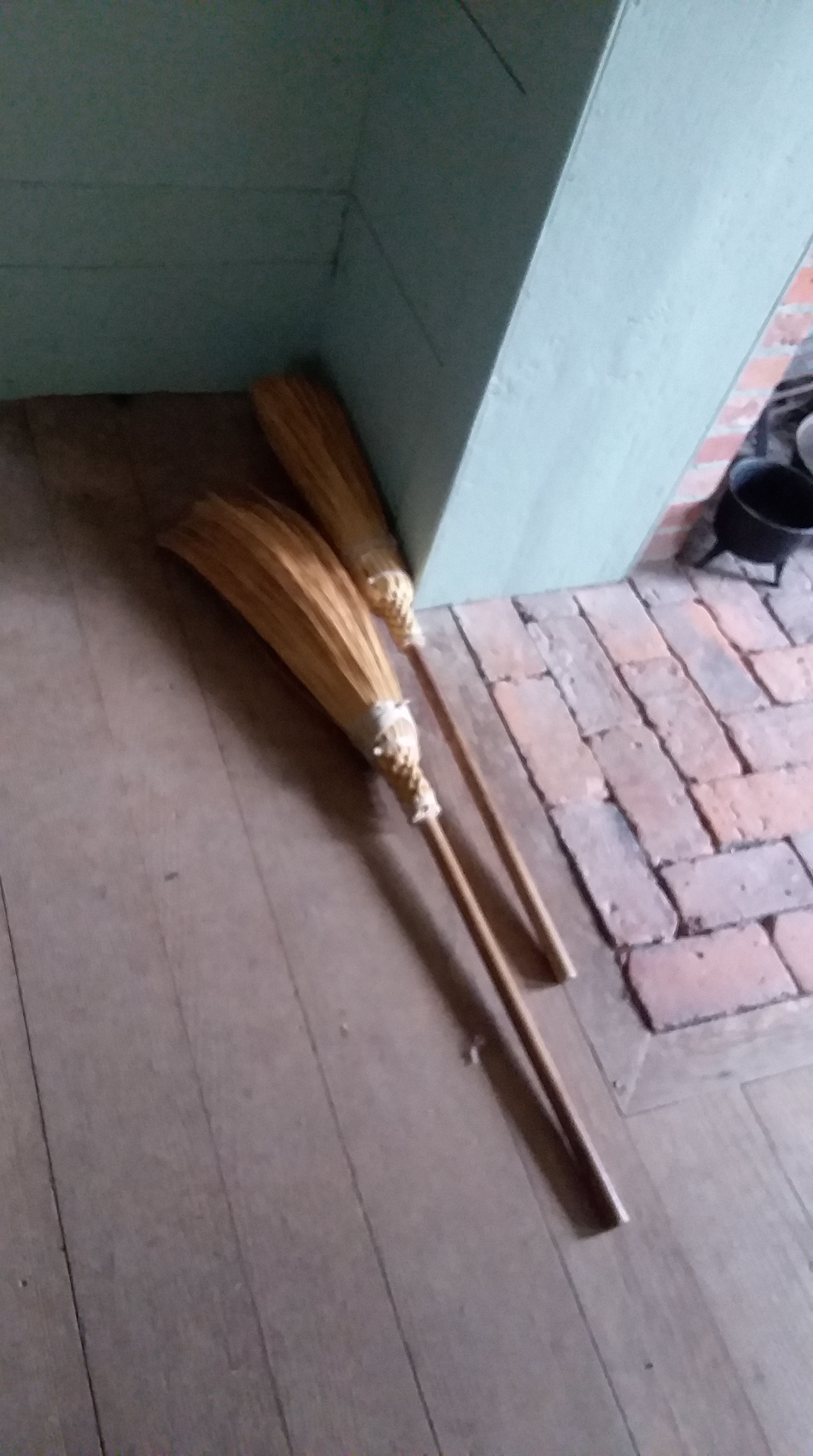 As I walked through the doorway, both brooms fell…. Guests are coming!
