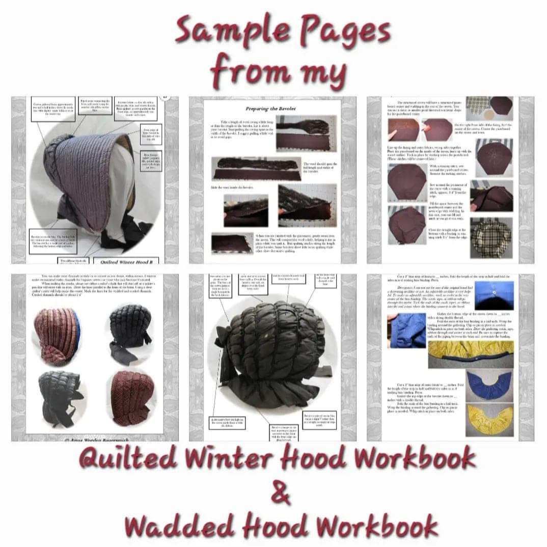 Introducing my Quilted Winter Hood Workbook, an in-depth exploration of original quilted hoods from the 1840s through the 1860s, complemented by patterns and instructions for making three quilted hoods.