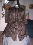 The challies which are offered at very reasonable prices this fall, are pretty, and seem likely to be the most durable of any commone dress goods that we find. They are nearly all in bayadere stripes – some of them high colored, but where warmth and durability are required we think they will be found very desirable. There is also a new material of Angola wool for dresses – heavier than wool delanes or merinos, which we judge to be very desirable for these qualities, viz: strength and durability, unless the satin stripe that adorns it should be found to fray out. – Dresses of this material can be bought in New York at $6, the pattern. This comes the nearest to ladies’ cloth of anything we have seen. The high-colored printed cashmeres – merino styles – are offered as low as six shillings per yard, while we found recently at Stewart’s the best colors of printed French merinos at a dollar per yard. The bright chintz, patterned, all wool delaines are offered lower than ever before. But no delaine can be as cheap as a good merino at least to those who wear their dresses out. We are glad to see more durable material for dresses coming into market. Much time and labor in dress-making will be saved by those who emply these materials. It is also a saving of expense, for the cost of making and trimming a dress of good, and of worthless material is very nearly the same. Every lady, then, should feel that time and labor are wasted in the making up of flimsy material and even if her means should be at first seem too limited to purchase that which is better, she should make a special effort to save up “capital to economise with”.